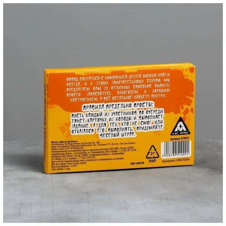 Купить игра для компании "фанты буханты" 20 карт от 100 руб. с доставкой до пункта выдачи в Дмитрове. Интернет магазин ДекаМаркет. Оплата при получении.